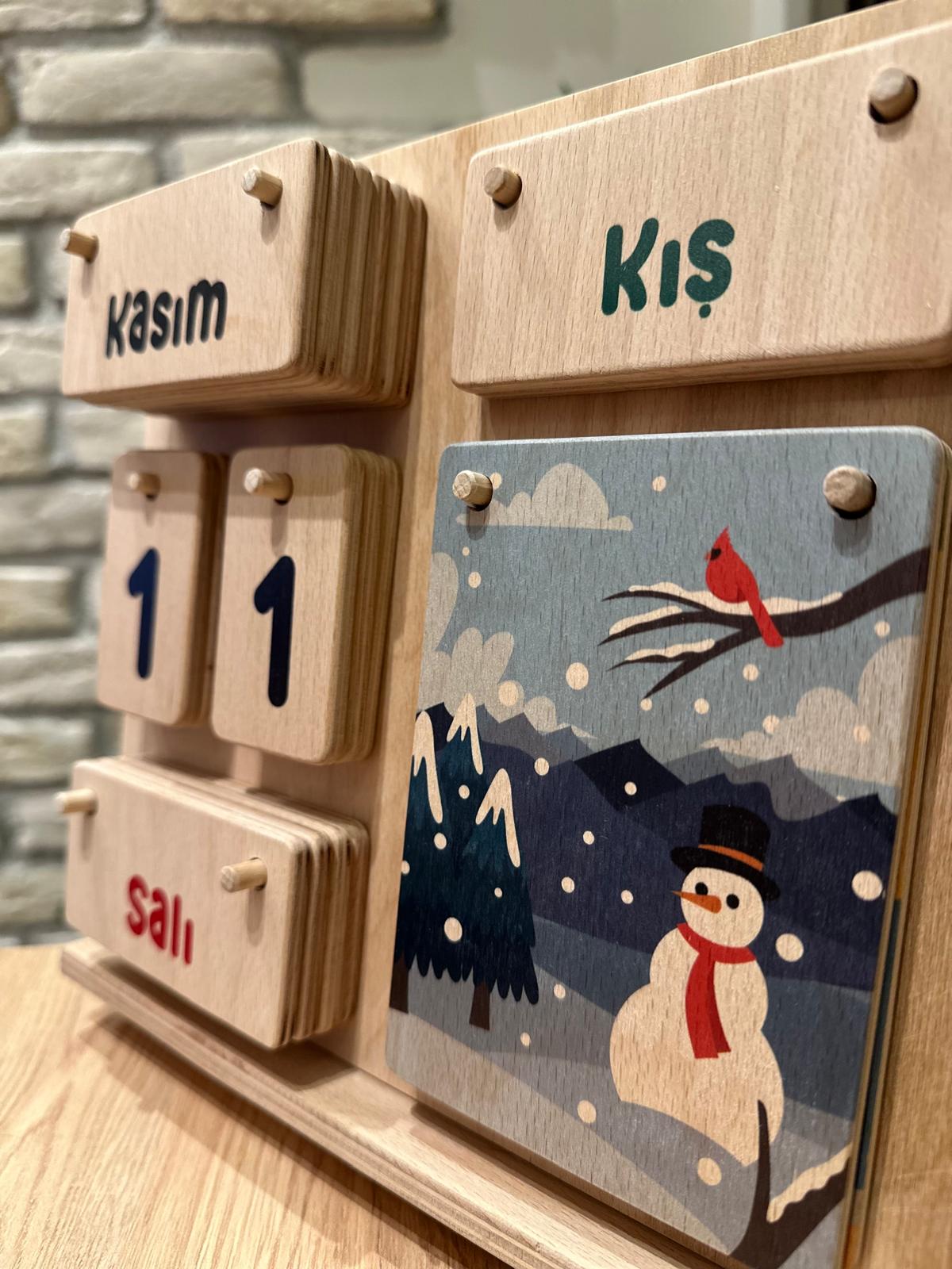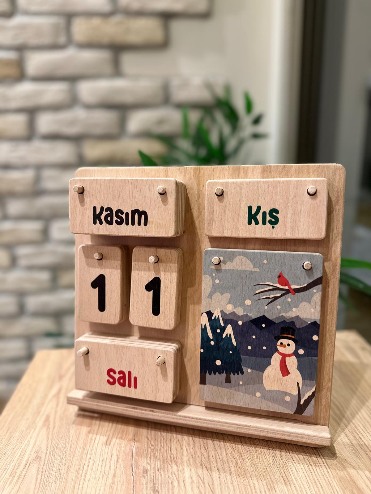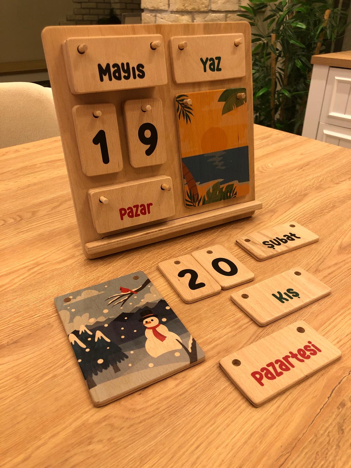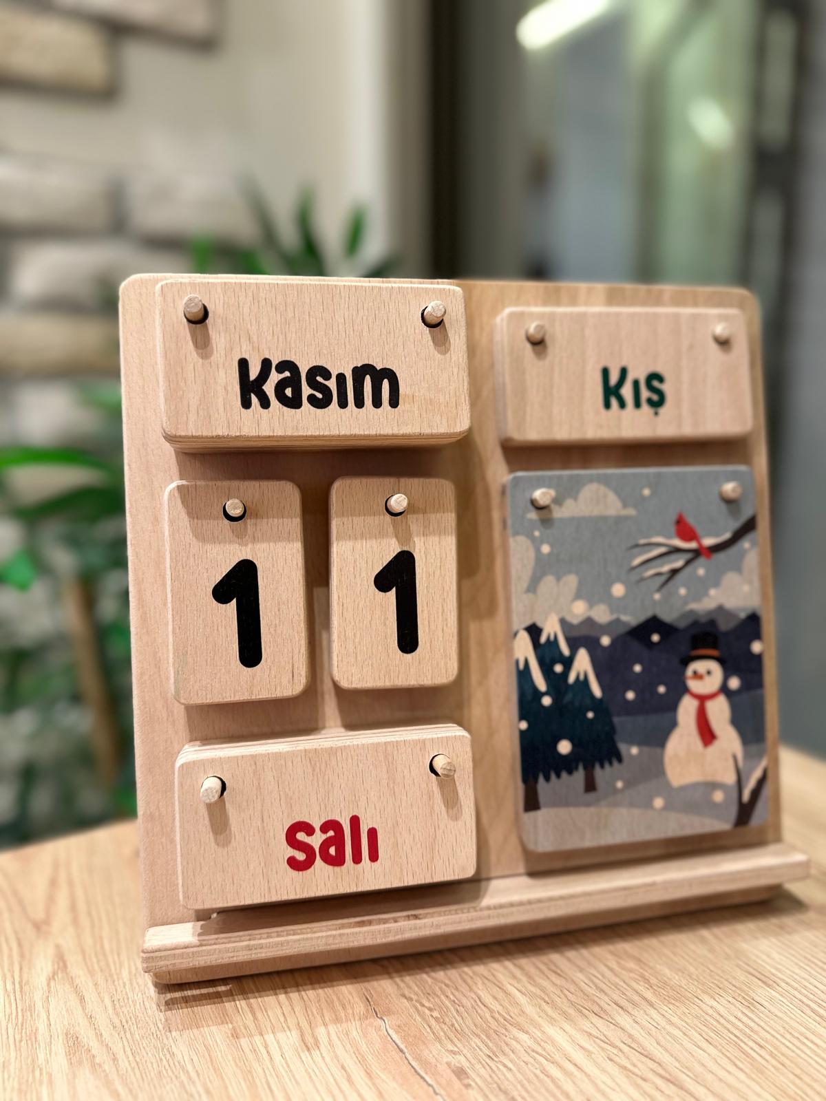 Montessori felsefesine uygun olarak tasarlanan Eğitici Takvim, çocukların zamanı eğlenceli ve etkileşimli bir şekilde öğrenmelerine yardımcı olur. Doğal ahşap yapısı ve güvenli tasarımıyla minik eller için ideal bir eğitim aracıdır.