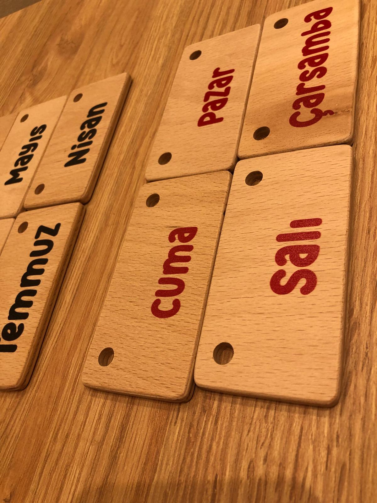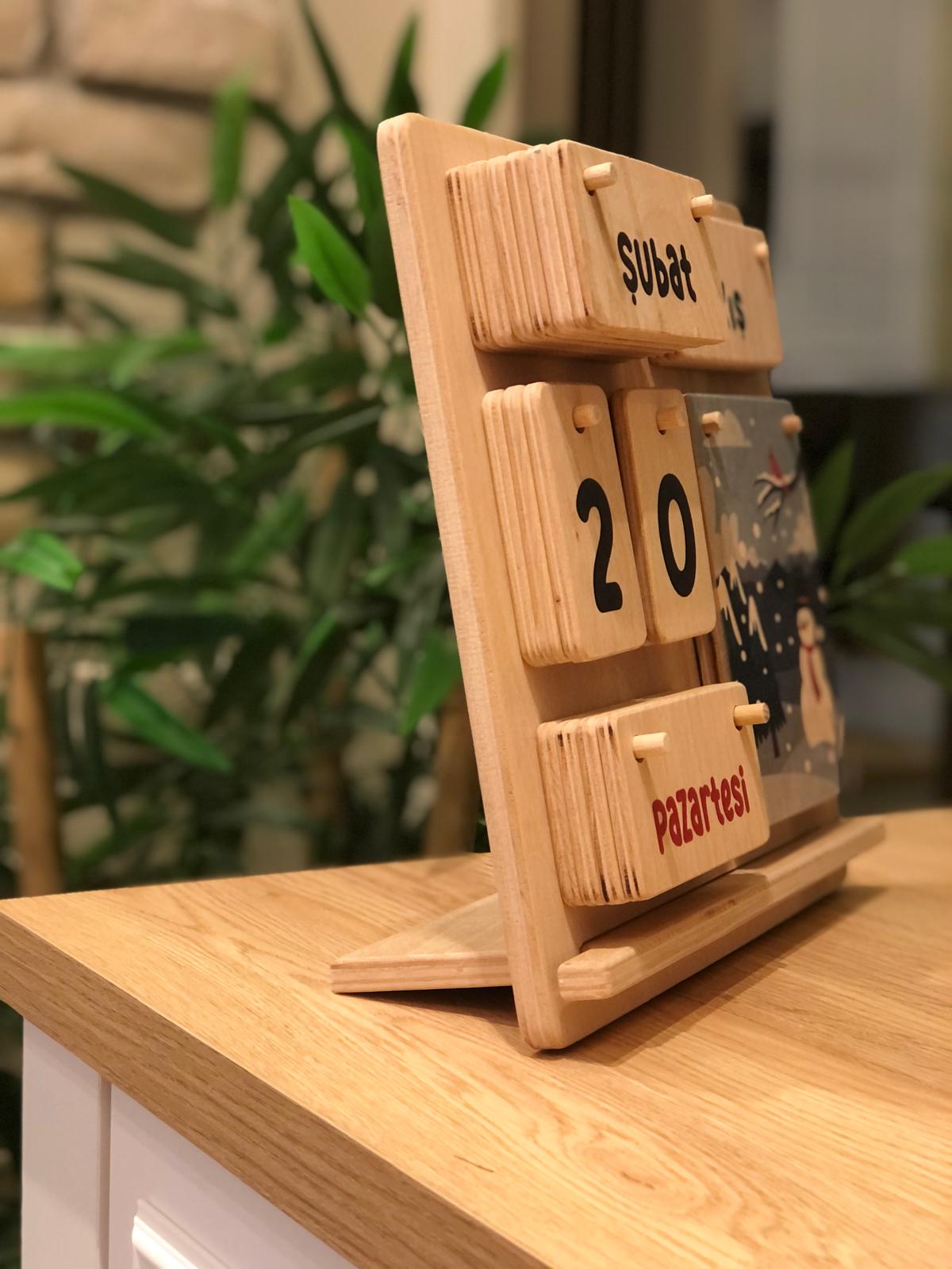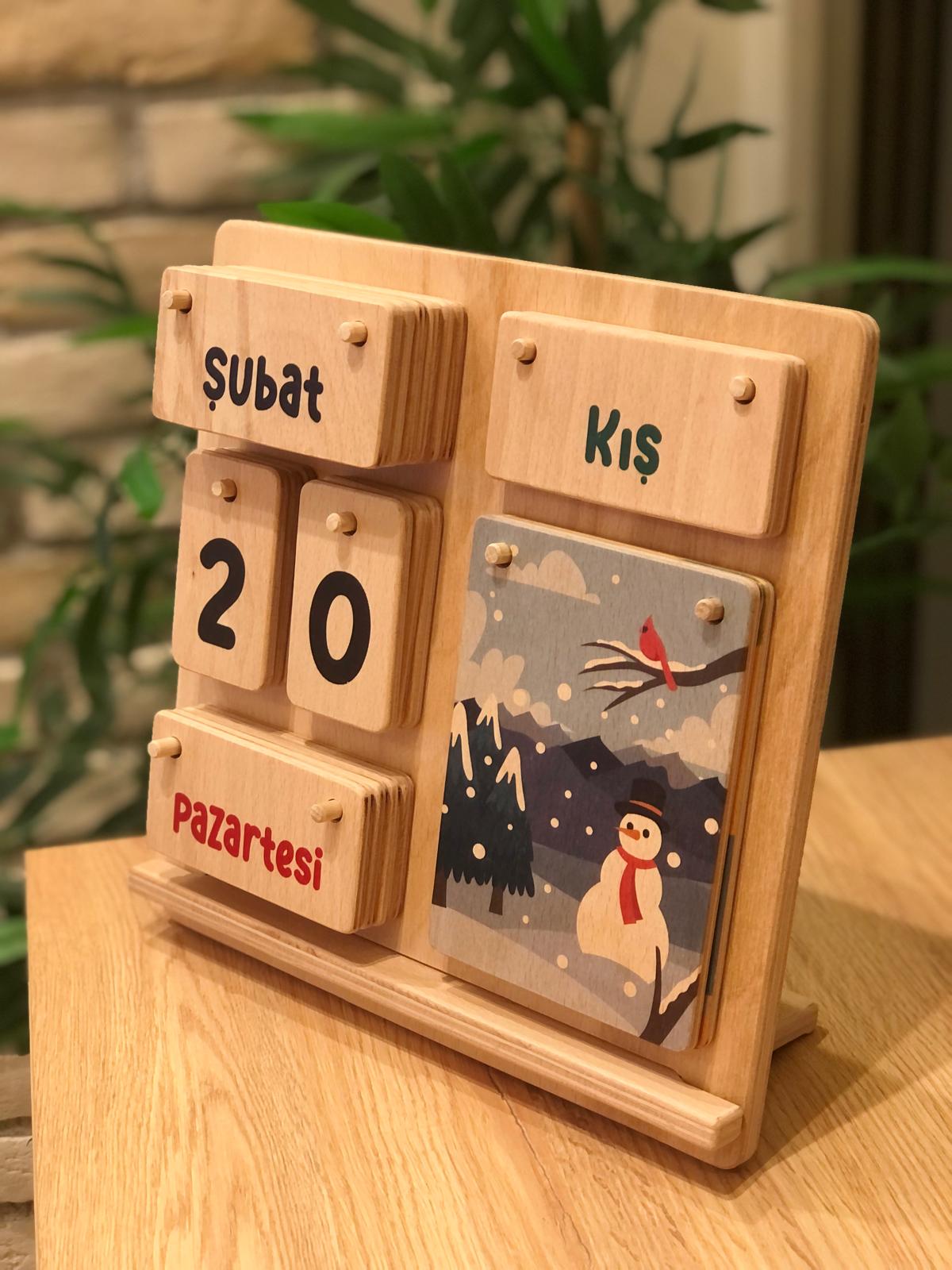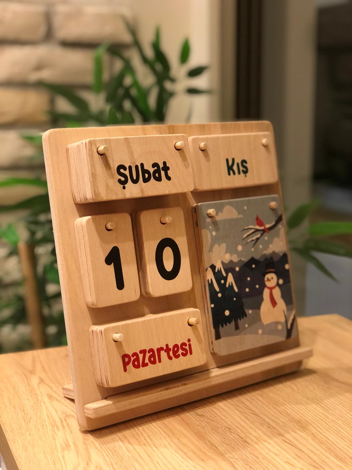 Montessori felsefesine uygun olarak tasarlanan Eğitici Takvim, çocukların zamanı eğlenceli ve etkileşimli bir şekilde öğrenmelerine yardımcı olur. Doğal ahşap yapısı ve güvenli tasarımıyla minik eller için ideal bir eğitim aracıdır.